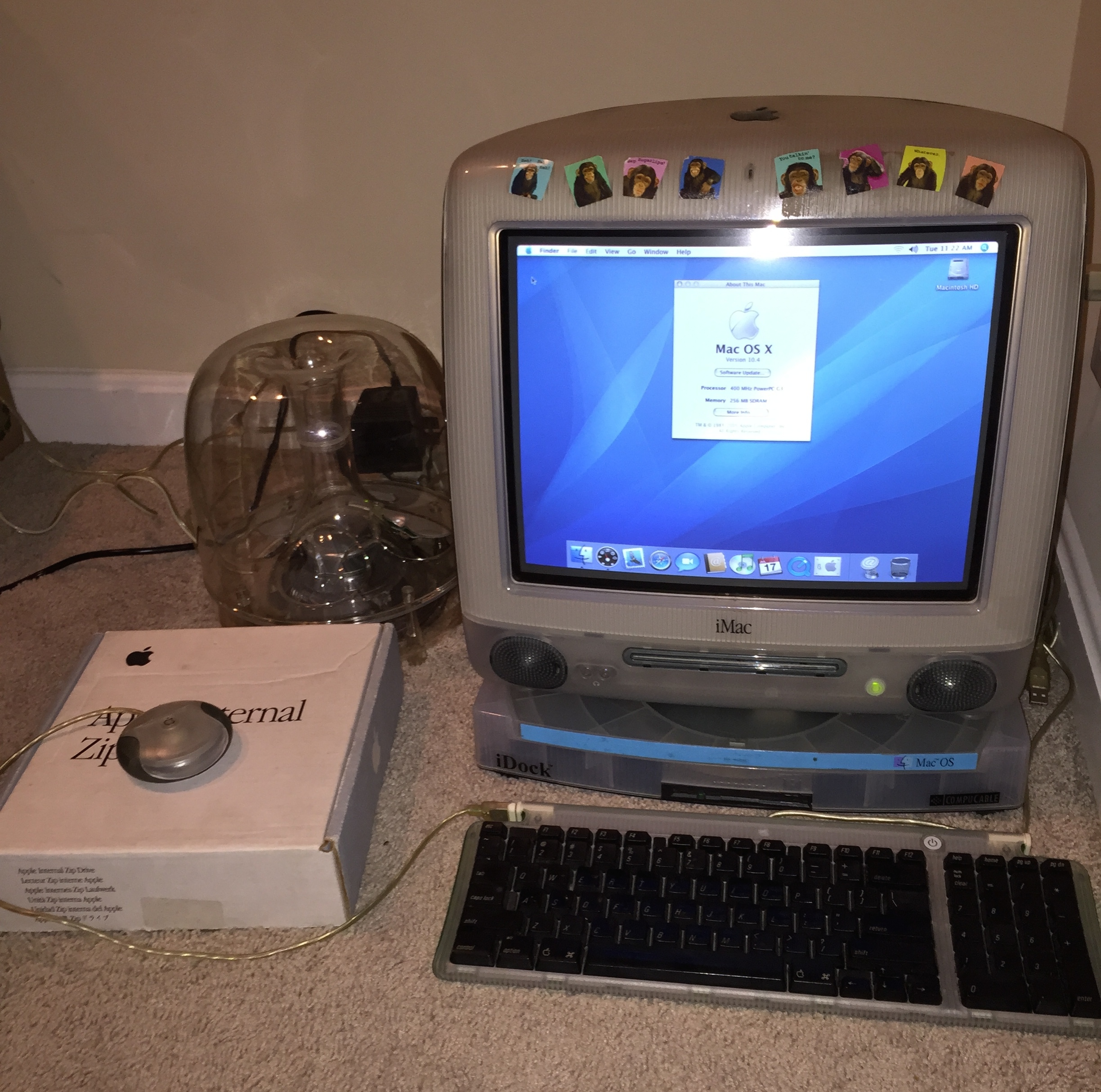 This was the best prize, though-a Harmon Kardon iSub, aka the iJellyFish. Unfortunately, Leopard deprecated support for these(a little bit of internet searching turned up an installer that adds the needed kexts) but it worked great this evening for testing under OS 9.2 with the(excellent) built in iMac speakers.