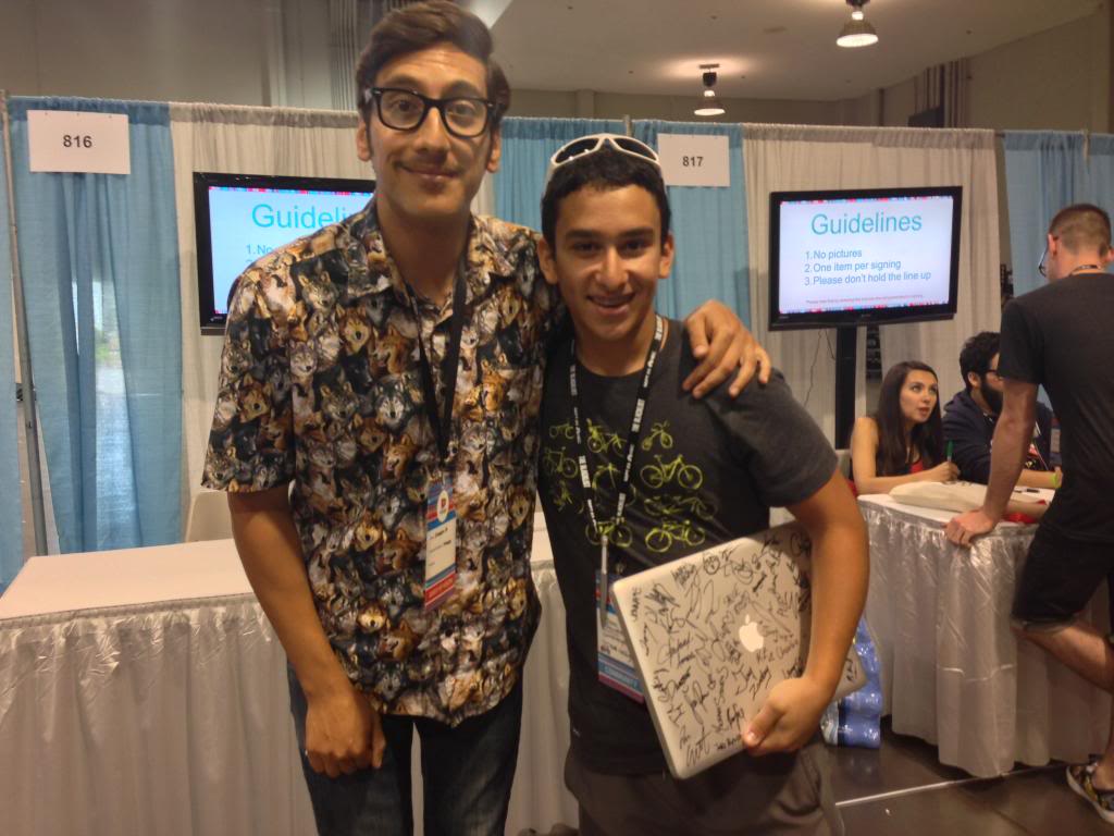 I went to vidcon this year, for the first time... And I had the time of my life! I woke up at 7:30am every morning of the convention, with bedtime around 1:30am. 6 hours of sleep, coupled with 3+ miles of walking around the Anaheim convention center each day resulted in a very tired AlphaDogg when I returned back to my home in Denver. I had every youtube celebrity I saw sign my computer. This is what I got in the end: