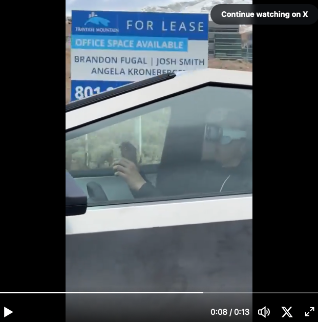 Brandon Fugal who owns Skinwalker Ranch (real estate agent on the sign). Industrial estate?While it's almost certainly clickbait, it does appear to be taking place on a public road. There are other vehicles waiting at red lights, and the driver passes a sign advertising office space in "Traverse Mountain," which is in Utah. Based on what I see on Google Maps, it looks like it might have been near the Adobe campus in Lehi.