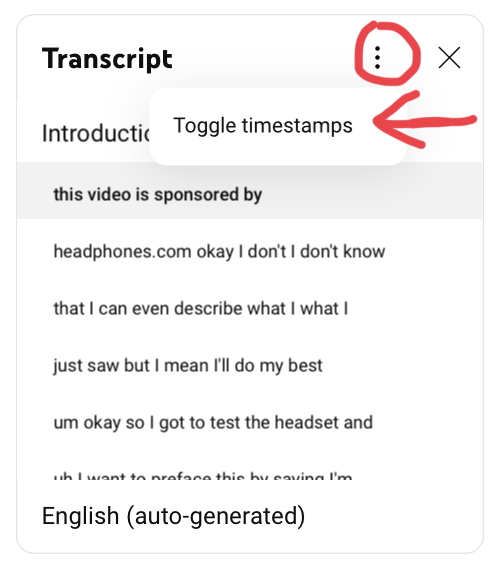 You get the transcript on the YouTube website:i'm not on mobile, dont have an iphone anymore actually