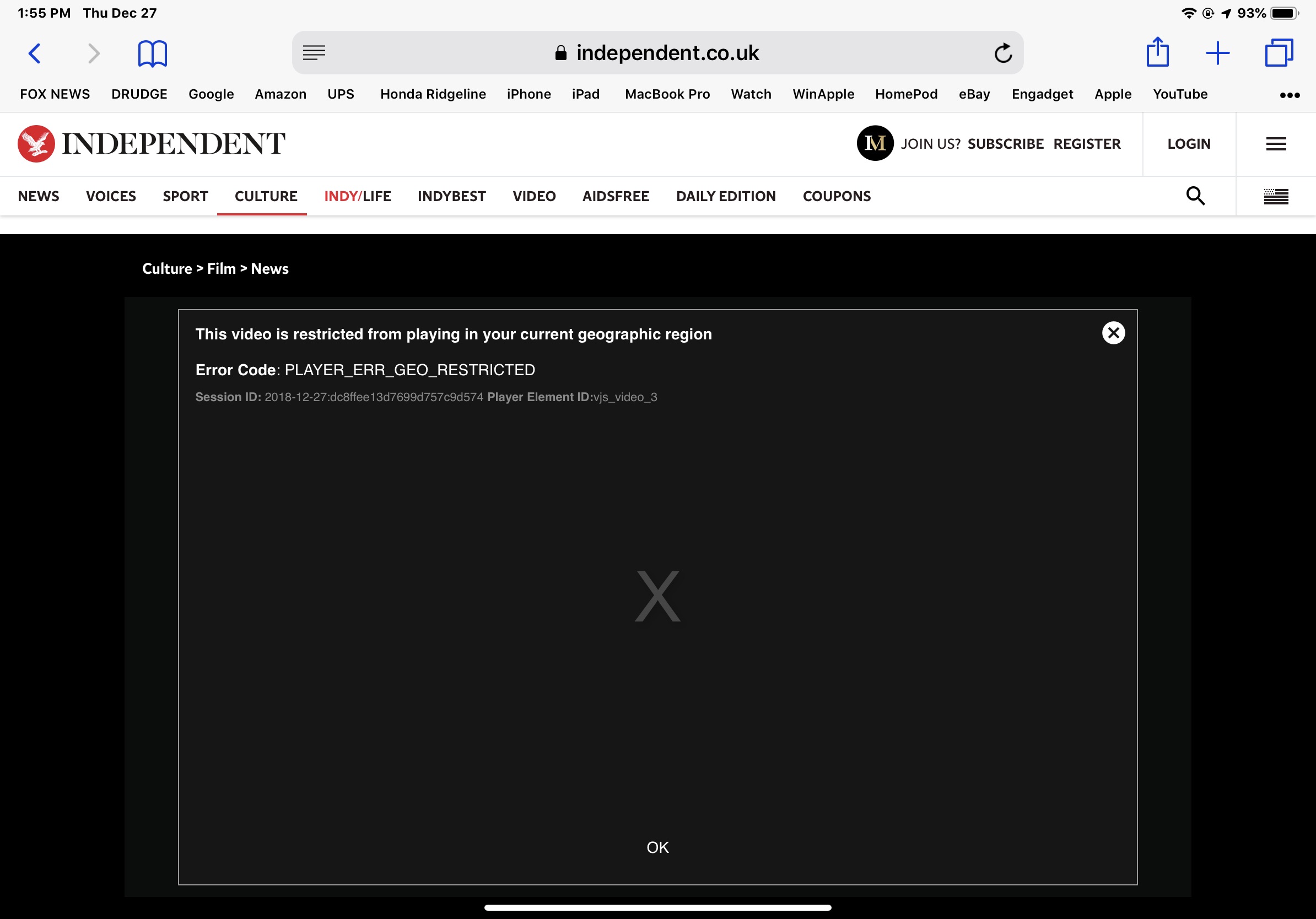 I am seeing this screen when I open some articles on my 11" in Safari.