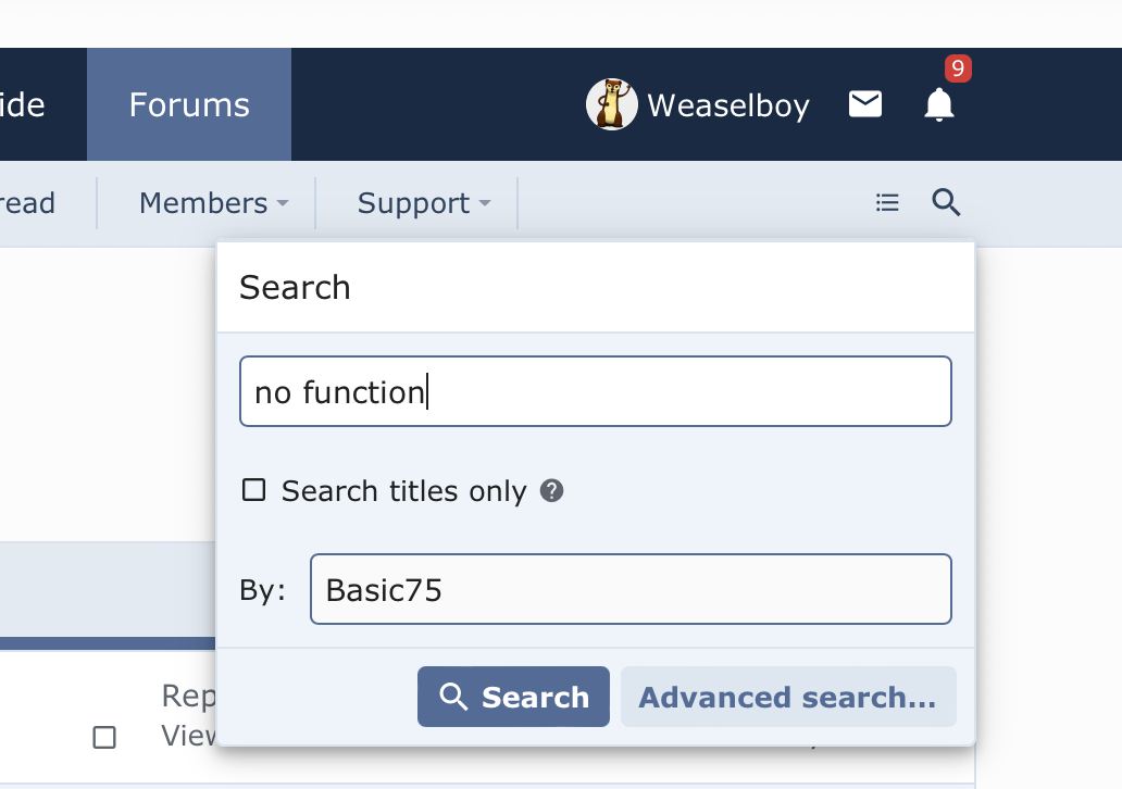 Click the magnifying glass at the top right then enter your search term and your member name like in my screenshot and you will get what you are after.