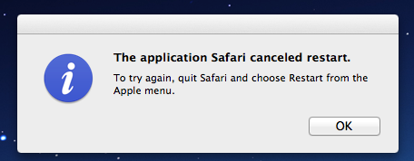 Help was on another forum and was reading some viewer comments and clicked on a link I thought was related to the story and got pop screen. I don't exactly recall but I thought I said if you want to close this webpage and be redirected back to the original website and I clicked on it and now I can't close safari or restart my computer.I get this annoying pop up that says "This application canceled restart" any help or suggestions would be much appreciated.........