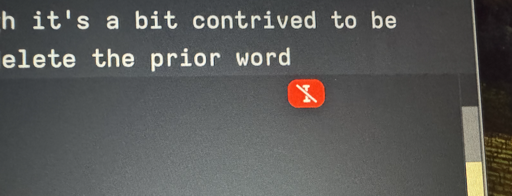 What does this red "I" with a slash through it mean? More advanced voice controls don't seem to be available, e.g. "delete previous three words" when this icon shows up. However, I can't find reference to that icon anywhere to confirm that voice control is saying that it's not compatible. Can anyone confirm that's what it means? I'd like to be able to submit this to the developer of the application.