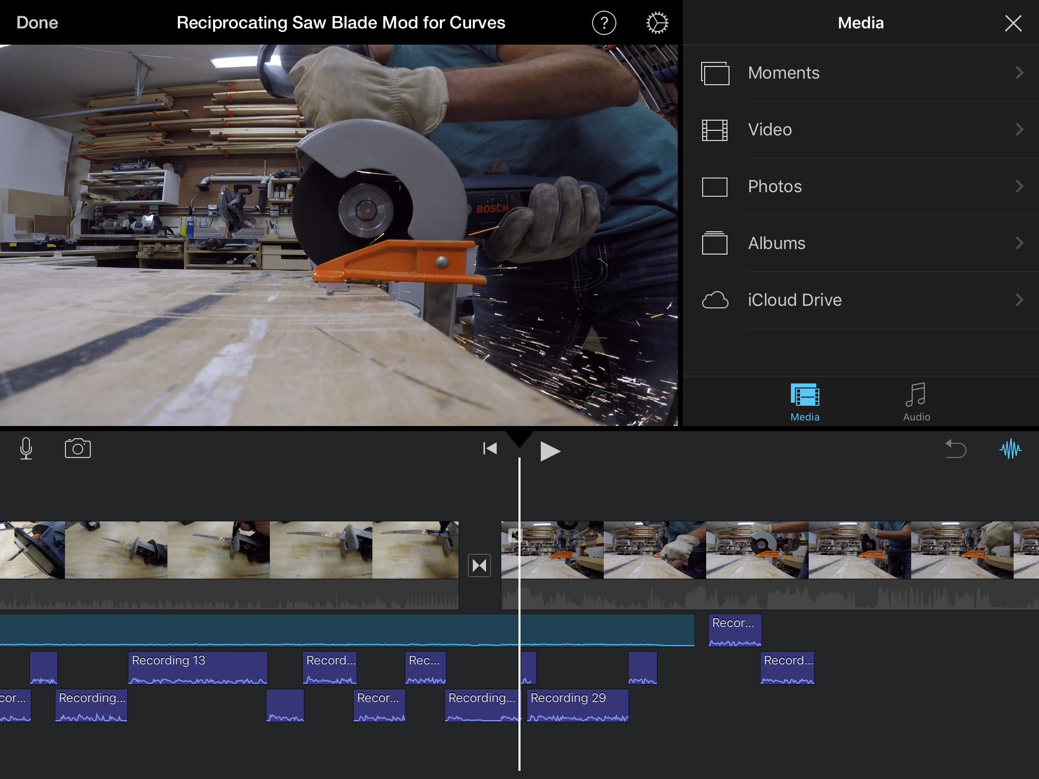 I'm working on some woodworking tutorial videos in iMovie, and I'd like to record a voiceover first, then grab clips from various devices to add where appropriate.
