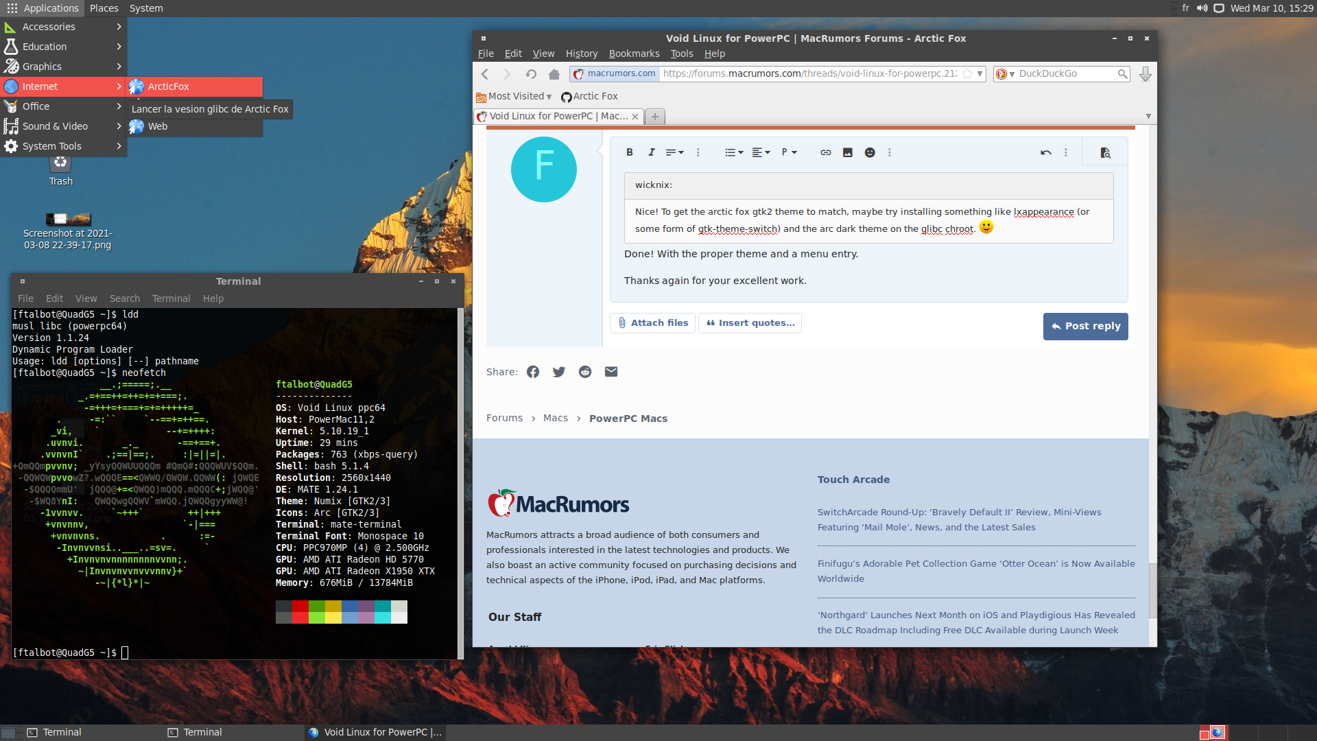 I've found Mate and IceWM to be the most stable. Xfce has issues, KDE plasma has issues, and Lxqt has issues in my testing. I've also noticed window drawing is laggy on my dual 2ghz G5. Doesn't matter if the compositor is turned on or off. Better with it off, but still not perfect. Probably due to the nvidia geforce fx5200 (but its fine in ubuntu/debian). As it's a rolling release it seems not much is really tested. If it builds it gets added to the repo. I've run across a few packages that just crash on startup (gnome-twitch for example). I've had to reinstall 3 times now after updating, then powering down. Upon reboot, same issue. Black or white screen, fans on high. Sometimes i can get it back by booting the old 4.4 kernel, but sometimes even that doesn't work. Sometimes resetting the PRAM fixes it, others it doesn't. I've finally got a stable system, and i will no longer do full system updates. I locked my current kernel in place, and if i need to update a package, say firefox, i just install that with it's deps, and nothing more. So far so good. Luckily that machine also has ubuntu on it so i've been able to retrieve any documents, music etc from a broken Void before reinstalling. Oddly on my 32bit systems, it's been rock solid. Go figure.