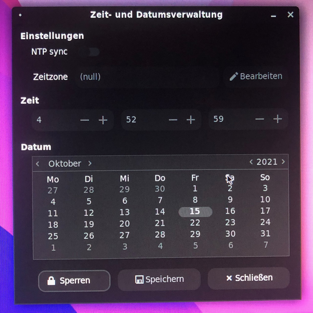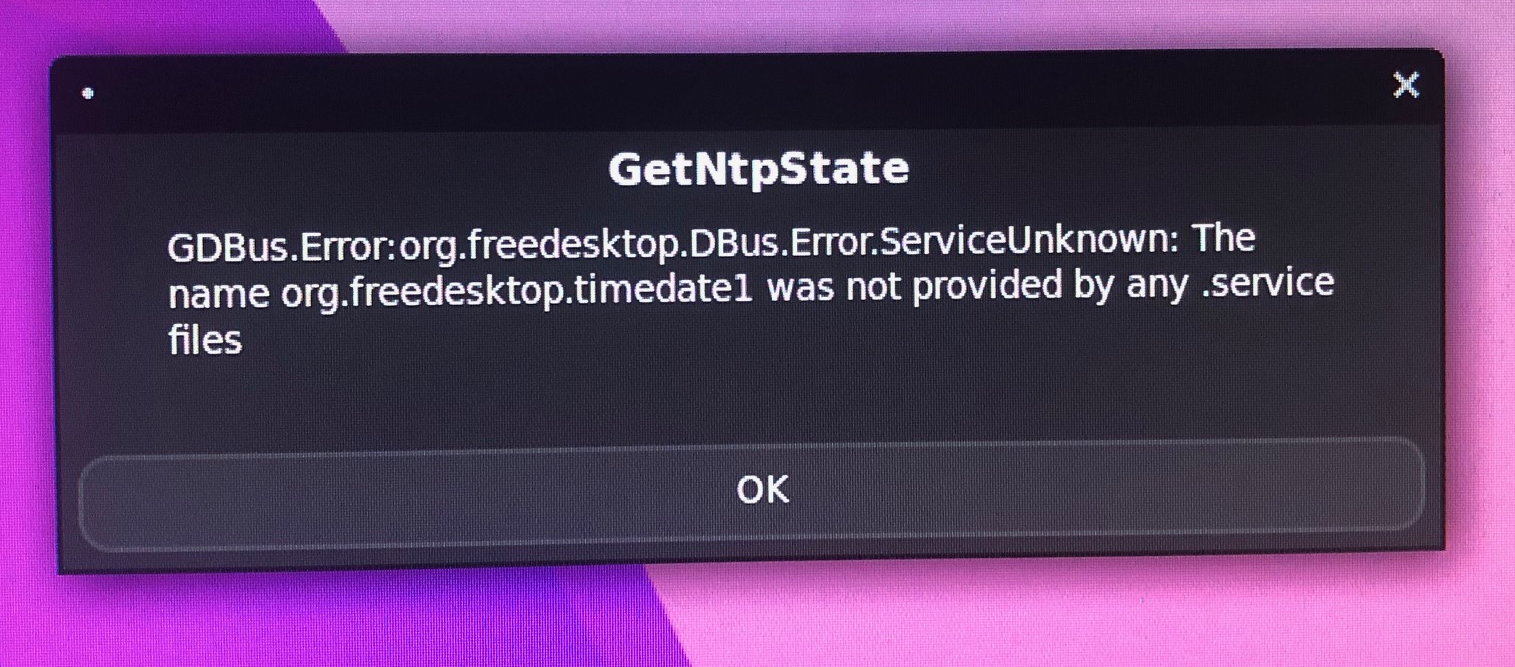 When openning the settings for time and date i get an error and the control panel is not useable. Anyone who can help with this?