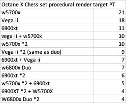 I ran Octane X, the trench benchmark, should give you a similar idearondocap, can you run a Octane Bench (20.2.3) with just one of the duo cards and then with both? For whatever reason it will not run with the 580x. But I did run it on my PC with the 1080ti; got 189.23 overall.
