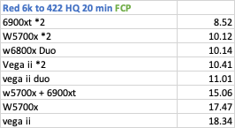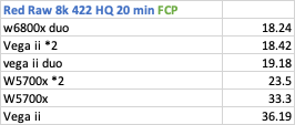 Yes I do! Not sure why the W5700x was so close to the W6800x Duo in the 6k, but 8k was better. maybe needs new driver updates.Thank you so much for all of these tests. Fascinating stuff. I don’t suppose you have access to Final Cut to do some tests?
