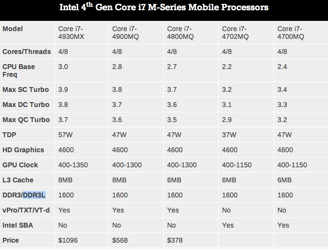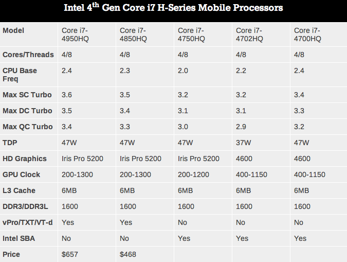 Intel has 2 Seperate Lines for the Mobile CPU's this year as compared to previous years. One line is the standard line and the other is a line that is dedicated to offering the Iris Pro Graphics