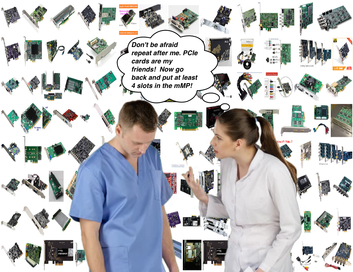 In some strange twisted way, I don't disagree with you here either. At least the latter half, but I think that speaks more to Apple's own arrogant design and mismanagement of the line starting 2013 ( maybe prior too ? ), and not to market demands or supply chain issues or whatever bovine fecal matter they use to justify their decisions during conference speeches. They've systematically made poor design/engineering decisions that alienated their consumer base; that is the premise I put forth to their poor sales, not that a 'Mac Pro customer base just isn't there or evolved away'. * I'm not saying that you said that I think you said that this is what you said. I'm inserting this for my own enjoyment purposes only.