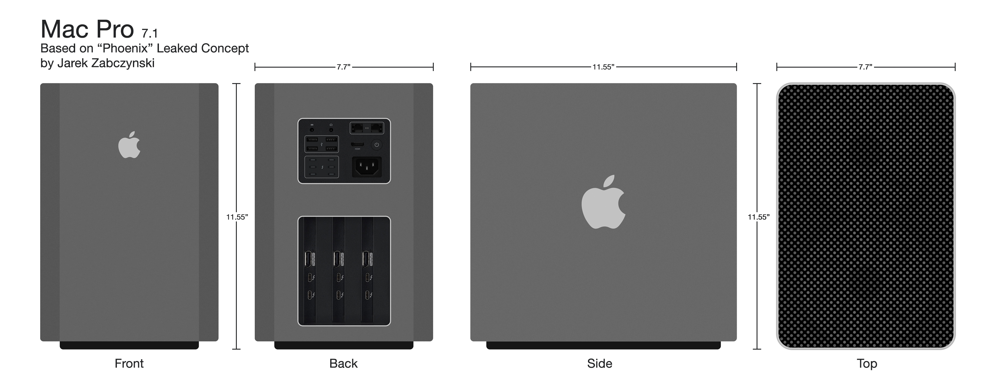 Finally a relatively large power supply would probably negate putting sockets on near the Power Plug in this set up. [ I realize this is simply 'cut & paste' from Mac Pro 2013 model. ( doesn't have ridiculous 8 Thunderbolt ports ). ] A subset of the "blocked" clearance issues here also as to where , even if 'hang' the PS bulk in the middle volume (like MP 2013), what are the clearances from the main logic board below.