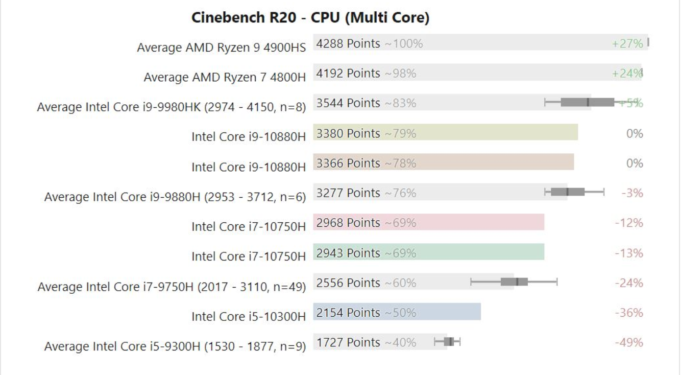 It's really a shame a lot of manufacturers had already inked deals to put these 10th gen chips in their machines. Hopefully they will make an effort to get some AMD SKUs out as well, they really deserve the business this go round!These dropped today. Benchmarks compare AMD's mobile star, the ASUS-exclusive 4900HS, with Intel's upcoming Comet Lake parts.