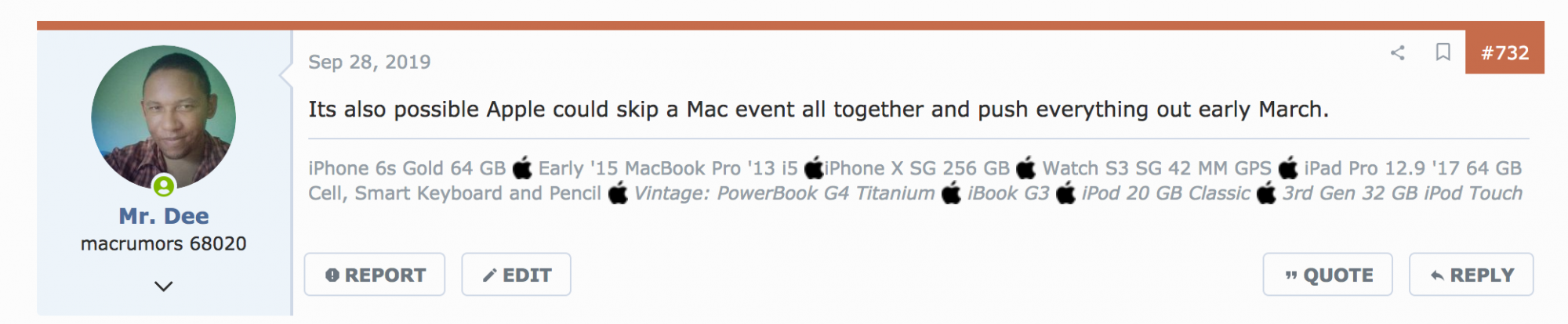 The other likely option is, they are gonna have an intimate event for a special select few reviewers at their loft in New York. They have done that in the past to demo the performance of MacBook Pro's used by artists, scientists and engineers.Maybe, but might as well wait a week before giving up on Fall. If the Mac Pro is released but no MacBook Pro comes, we'll know.