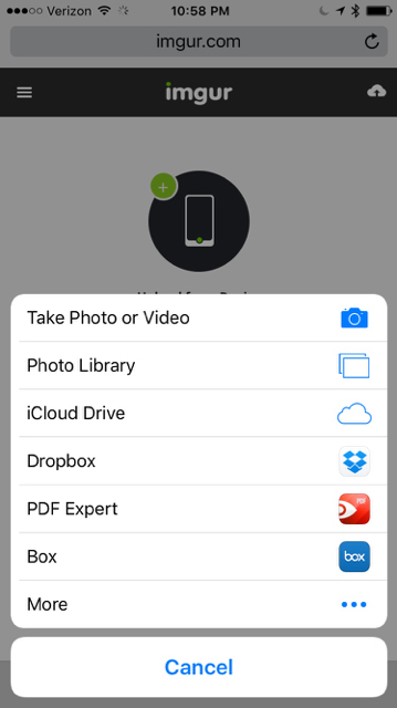 This feature was added in iOS 9, you should be able to upload a file from iCloud Drive or any other document provider app like Dropbox or Box.
