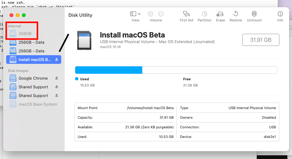 While I was creating a bootable Big Sur SD card, I see 3 drives the top is grayed out..