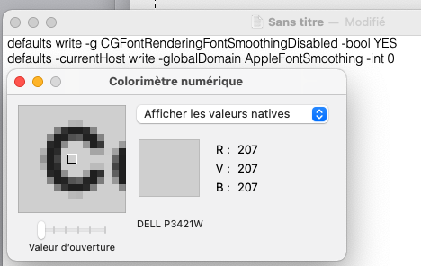 defaults -currentHost write -globalDomain AppleFontSmoothing -int 0