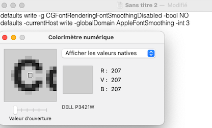 defaults -currentHost write -globalDomain AppleFontSmoothing -int 3