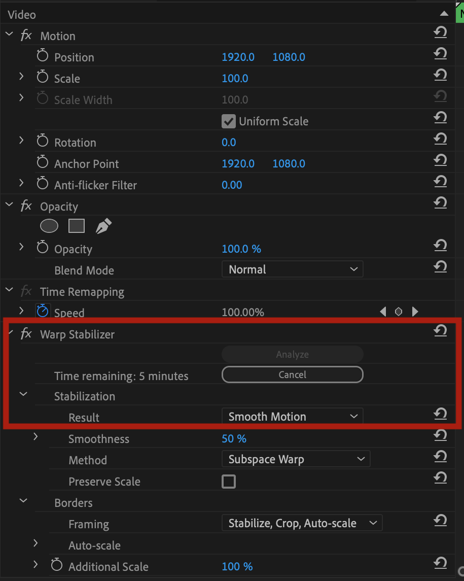 I'm having an extremely hard time applying Warp Stabilizer to clips where either PrePro crashes completely or just takes on average 20/25min to analyze a clip. Is that normal when applying it to anything shot on the Lumix Lumix S5 Mark IIX, 4k, Long GOP, 59p?