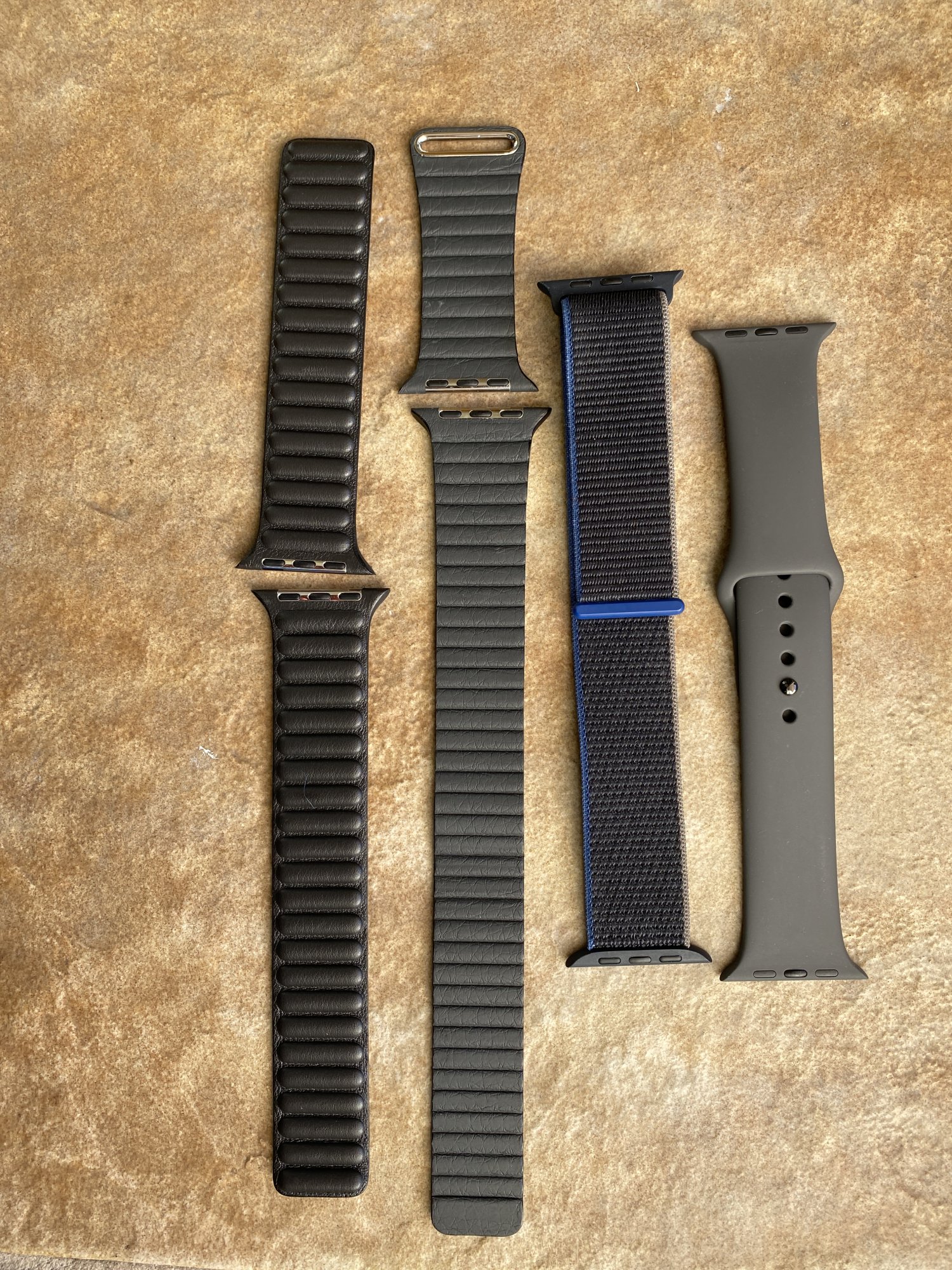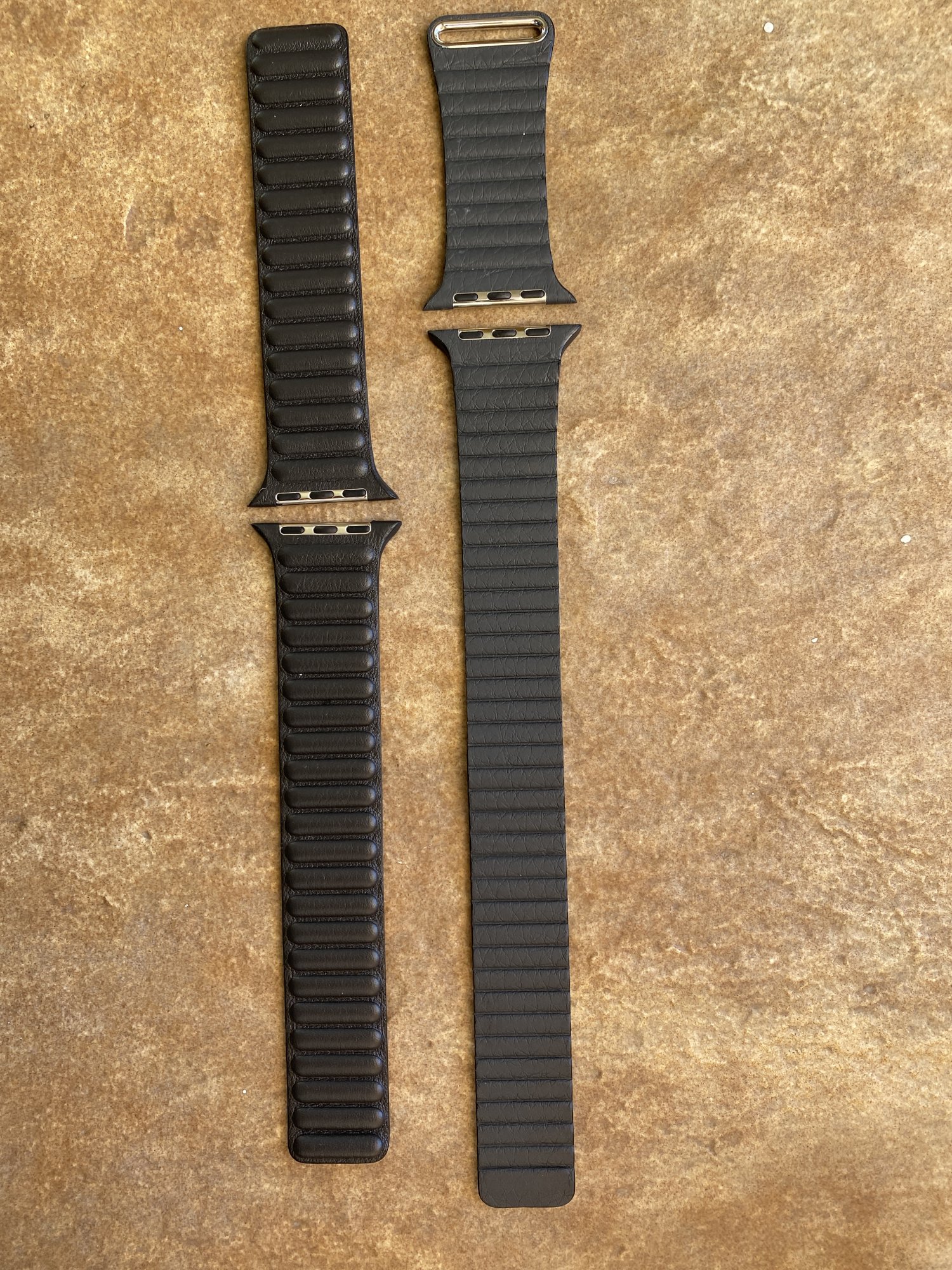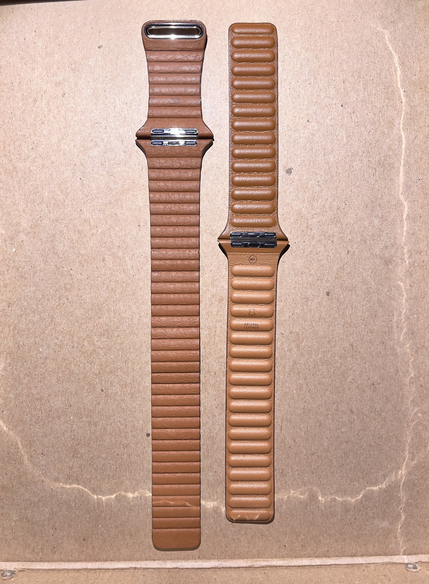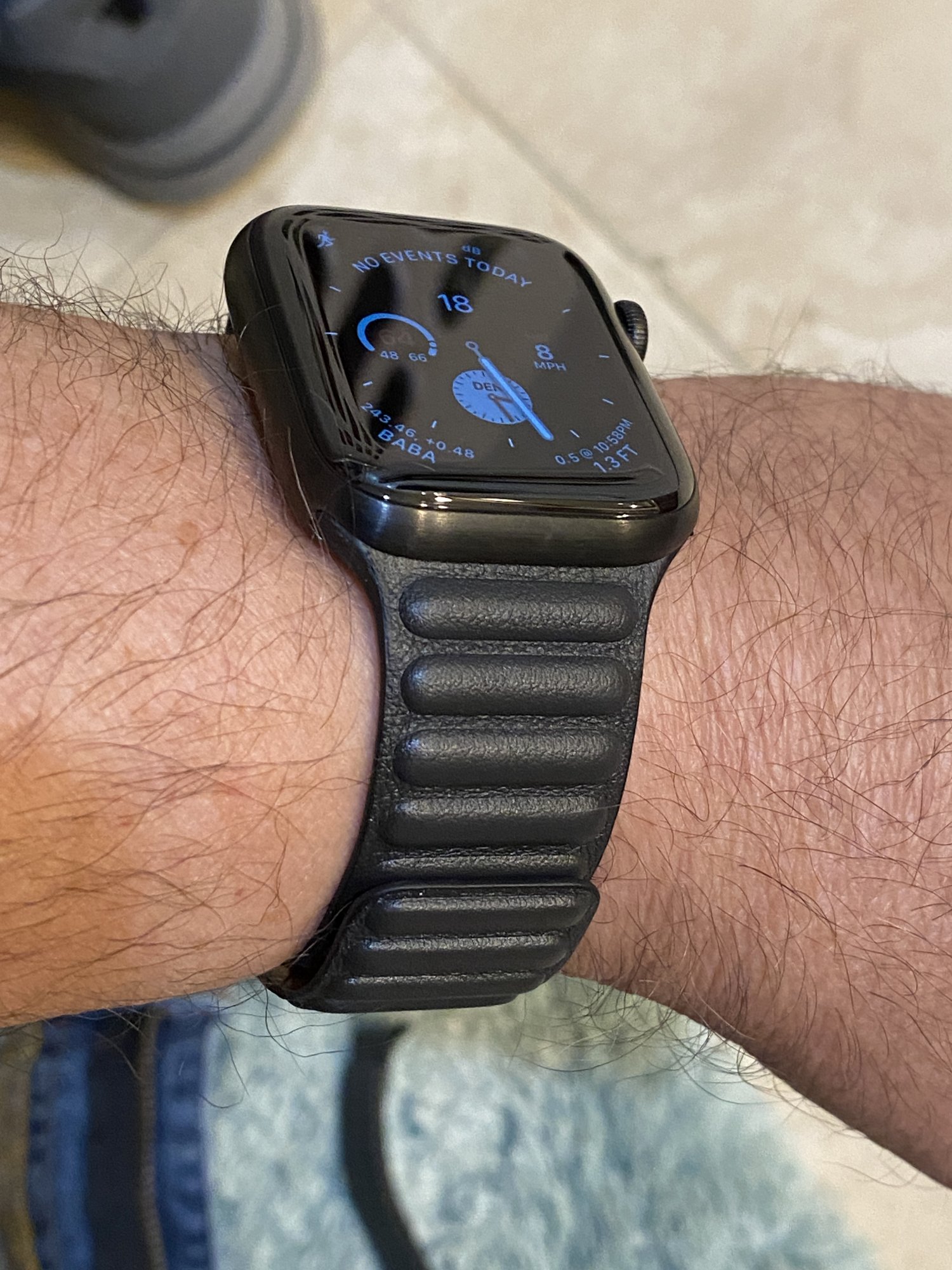 I sprung for a SBSS Series 5 on eBay a few days ago, so now I’m looking for spicier bands to add do my collection. Leather loops seem to be the way to go, once I can track down the colors I had and liked (sold all of mine because I didn’t like how they looked on my aluminums.)Finally got my black leather link. It’s much blacker and shinier that the black leather loop