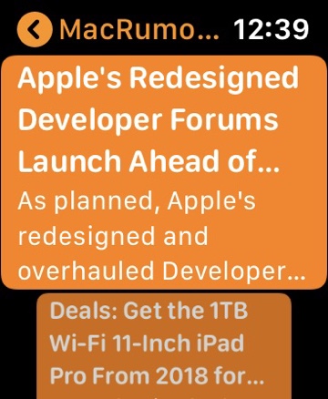 I just came across a great RSS feed app for the Apple Watch. If your watch has cellular enabled, you don’t need to have your phone with you to receive and view feeds on the watch. Articles are easy to swipe through and read.