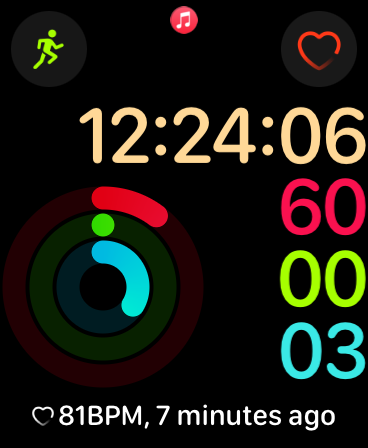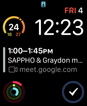 I go to the gym and swipe over to my Acitivity Watch Face with its own useful complications: