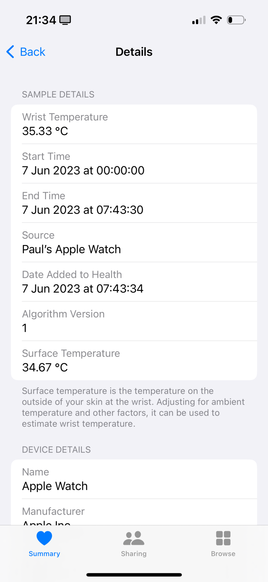 Yes it doesCould you please check if wrist temperature still has the algorithm version 1. You can check it from the Heath App->Wrist Temperature->Show All Datas->Select a data