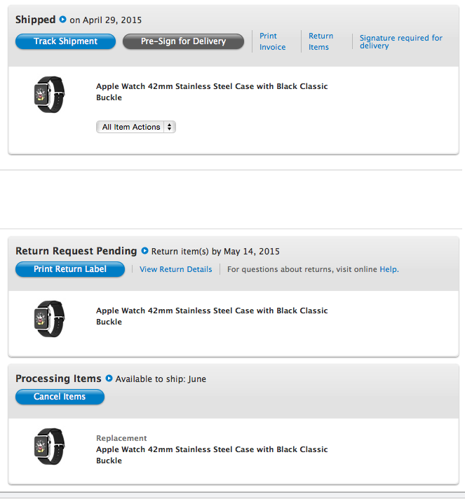 And I just received a second email charactering the first order as a Return Request. Whatever this all means I'm confident that I'll have a watch by mid to late next week.