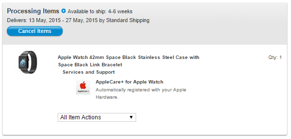 now what I'm getting prepared as I would receive the watch in a day or two .. fighting with and between Apple & Barclay's as I pre-ordered the watch within a special financing period through Apple Barclays card on 4/10 and now the watch is being charged outside that promotion period of 1st 30 days .. I'll end up having no option but to pay in full !!