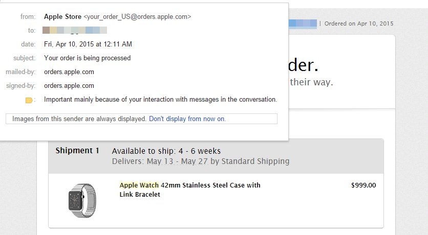 Apple said link bracelets would ship between may 13- and may 27 for almost all early orders.