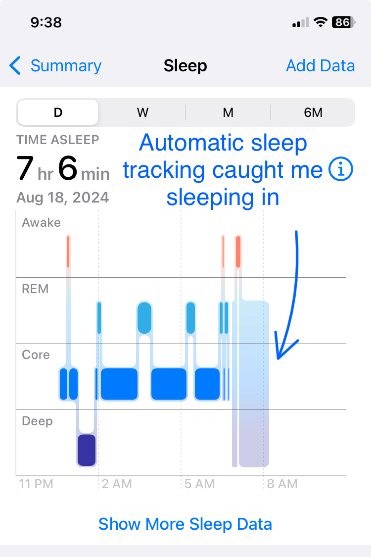 My Apple Watch Series 6 on watchOS 11 beta 6 just did this secret feature this morning. I accidentally slept in for another hour and it tracked it, was still in bed and snoozed my alarm ⏰.