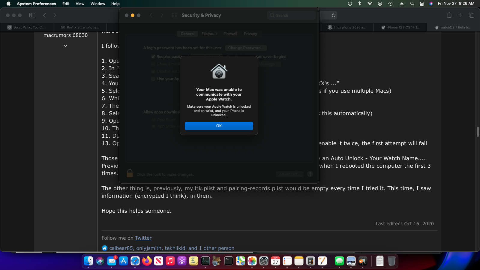 4. Try again in "Security & Privacy" to let Apple Watch unlock you computer