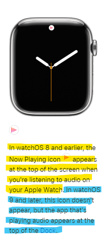 “I too, have no icons for active apps like ‘Now Playing’ or active ‘Training’ at the top of the screen. None at all. Series 7 with watchOS 9. Same with my gf’s Series 5 and watchOS 9. I checked all relevant settings, everything’s turned on as it should. I restarted and hard rebooted iPhone (13 Pro Max, iOS 16) and Watch to no effect. This surely must be a bug that more people are experiencing?”.