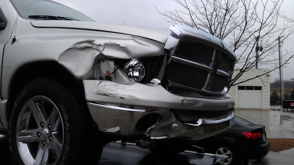 This is what happens when the woman driving in the right lane just ahead of you decides to try and make a u-turn with out looking for traffic. This happened Saturday afternoon. The cops wouldn't come because there were no injuries, so she didn't get a ticket for failure to yield, improper lane change or anything else, so it is up to the insurance companies to find fault. Within 20 minutes of the accident she calls my insurance, Progressive, and claims I rear ended her and tries to make a claim. I talk to the claims rep and tell him what happens and send him pictures of the damage to show him I did not rear end her. All of this took place before Sunday night. I had yet to get a hold of her insurance company, Rio National, because they are only open Monday through Friday, like 8-7. So I finally call and get a hold of someone to make a claim Monday morning and they said a claims rep would call me within 72 hours. So my Progressive claim has moved from a guy that specializes in rear end accidents to one that specializes in this type and I have talked to both, they have talked to her and are trying to get the ball rolling and I still have a couple days to here anything from her insurance. Then this afternoon her insurance company calls me and says they are denying the claim since she wasn't insured at the time of the accident. She's basically one of the worthless f*&$ing drivers that will pay for their first month, get the insurance card that shows 6 months and just let is lapse. So now I have to make a claim on my insurance, since I can't afford to fix it out of pocket and be out my deductible. I am beyond pissed at this point. I will get a little satisfaction when I mail all of the paperwork to the state claiming she was in an accident without insurance and they revoke her license for up to a year. You can clearly see that I rear ended her.