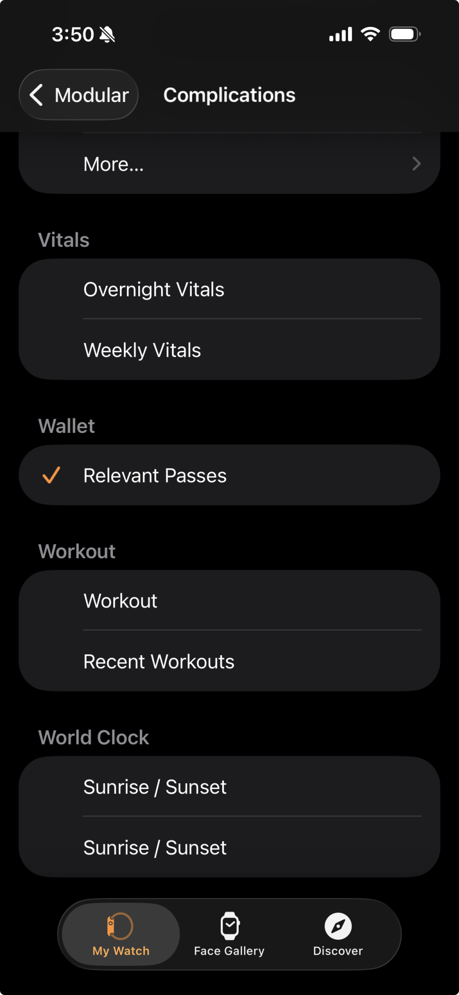 When I try to add the compilation in the middle on my watch, it isn't even listed as a complication I can add...
