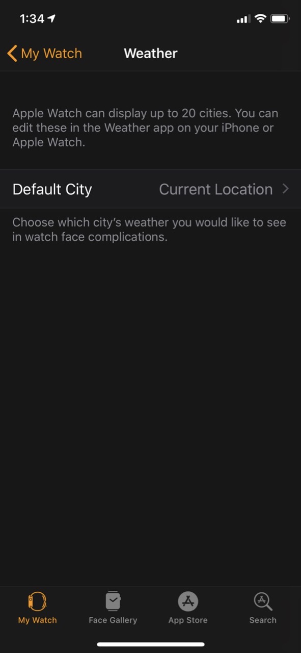 My weather location will not change on my apple watch. It just stays on my local city. Do I have a setting wrong? Thanks
