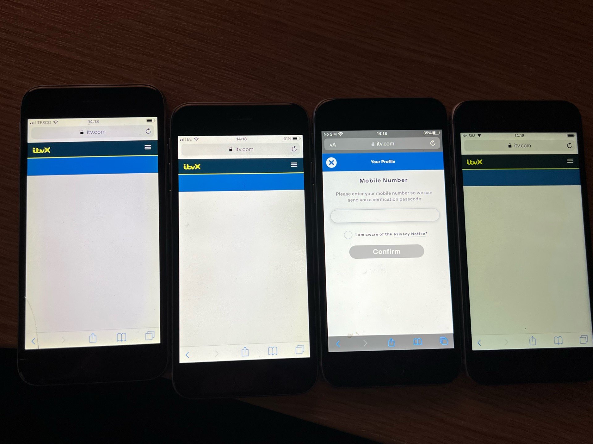 Hi got 4 x iphone 6, I use for web browsing but mainly for an ITV website I use to watch advertising videos get competition points. Suddenly the log in page stopped working on 3 phones, it works on the last iphone 6, see photos you will see only 1 phone has the correct log in page