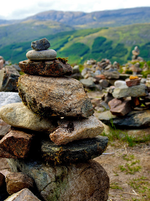 Well now I can post this. This is from a trip I took up to Skye but I think it was someplace before we crossed the bridge. I love the stones people leave in remembrance of loved ones. I tell my friends that when I kick the bucket, I require them to carry a stone for me and leave it here so I have someplace beautiful to look at for eternity**.