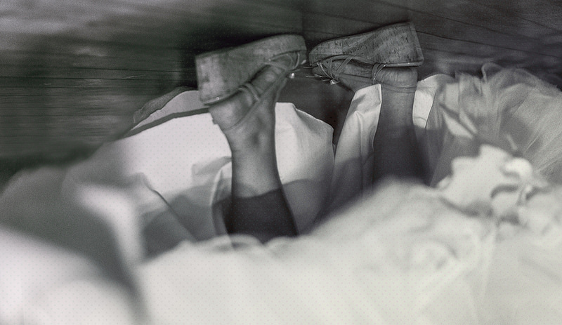 Just out of interest, Patrick, is this a skirt with feet in surprising footwear for the formality of the dress, or a composite of a flower and some feet, both with a dotted overlay?