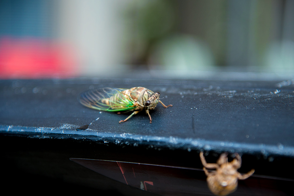 I'm glad you re-joined us for this one. Wonderful colours on the wing of the cicada and I like that you included its exoskeleton in the frame. The thin focus has worked well, it's not too thin that we can't recognise the skin it has shed in the foreground. I would have included a tad more of the lower section and decreased the saturation of the reds quite heavily as it draws the eye away from the cicada. You could have also played with a square crop, having the cicada and its shed skin diagonally across from each other in the frame.