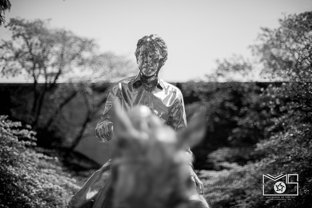 Quite the different portrait from you! A very thin depth of focus here with this interesting sculpture. I would have tried to get slightly higher with this one if at all possible or even stepped to the side to get the out of focus head minimised and not so dominant in the image.