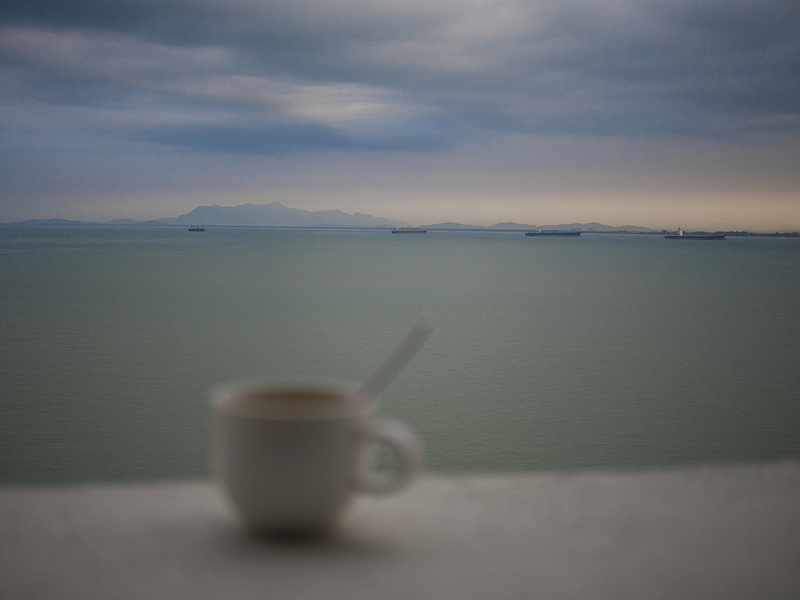 A clever use of focal point with it being in the long distance, rather than the foreground. The cup and spoon within it are still recognisable enough to assure the viewer of what they are. Nice cool colours and tones and the square crop has worked well here. the line of ships add some good interest to the mountain range in the back of the image.
