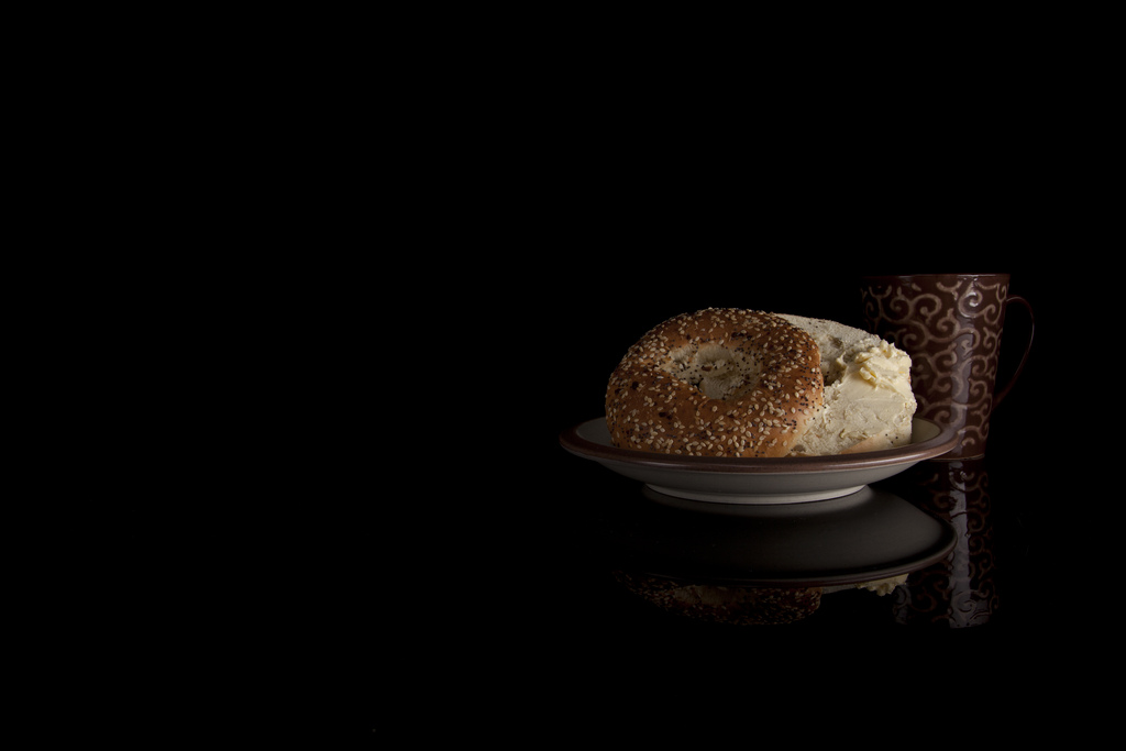 Ipodtoucher It is rare that I find food an intriguing subject, but youve done a fantastic job of capturing a simple bagel and cup of coffee (I assume?). Great use of the rule of thirds not only with the subject but in the reflection, also. The perfect lighting enhances the warmth of the image and would undoubtedly make me hungry if I hadnt just ate. Nicely done.