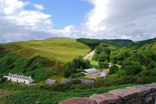 acearchie The wonderful shades of green make for a lovely photo. At first, my eyes seemed to be fighting for focus between the buildings and the horizon youve created in the upper third, but for some reason I think the wall in the foreground helps create a separation between the two that works for me. Im wondering if there might have been room to the left of the photo that would have allowed you to put the road more toward the right of the frame, creating even more of a divide between the forest on the right and the field on the left. Very nice photo.