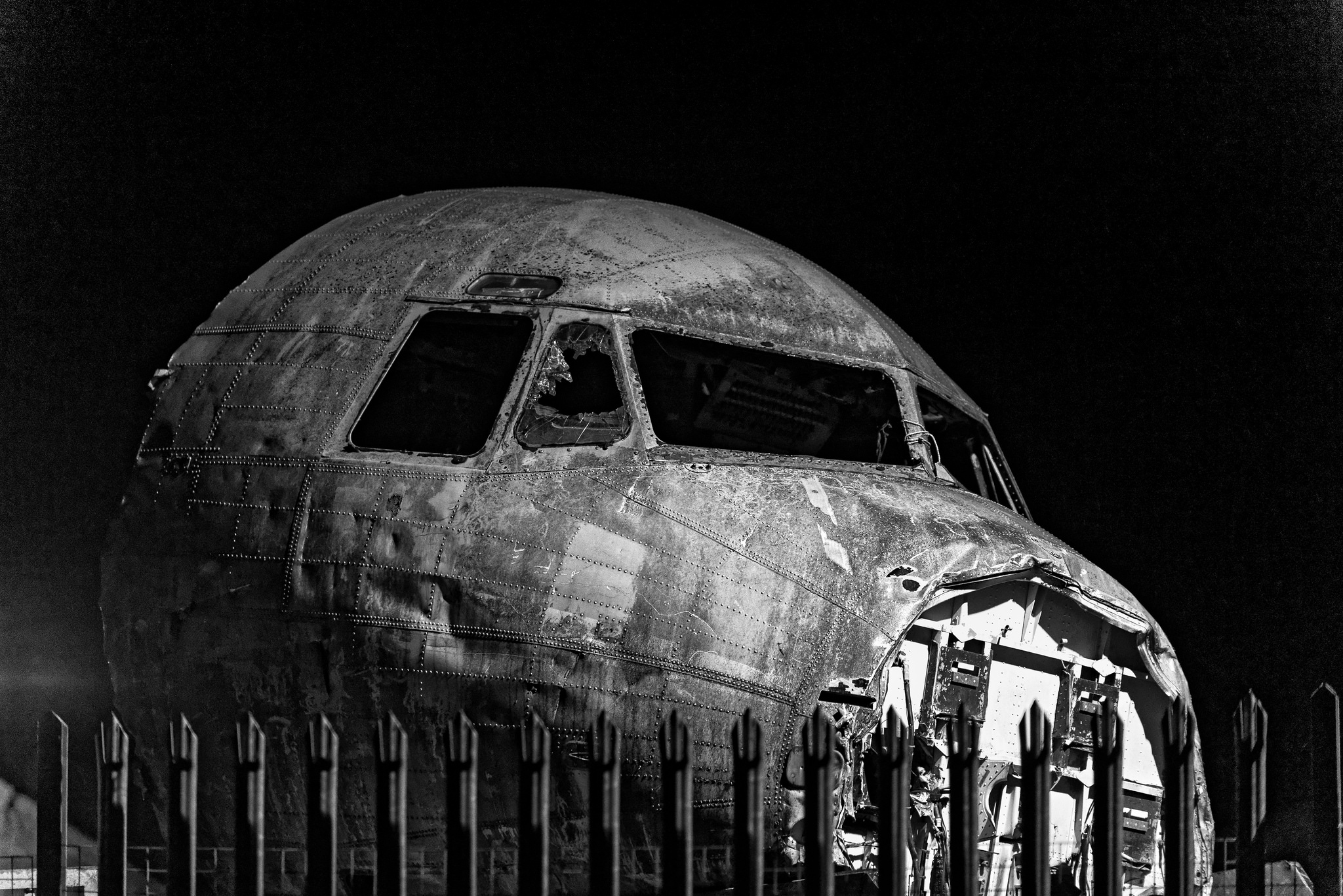 APPLE FANBOY: I really liked this one when you first posted. It is right on topic and certainly not a make the numbers job. When you think of the glory days of air travel and the cost associated with building one of these in the first place, seeing the plane dismembered in this way is rather sad. The B&W treatment is spot-on and I think the scrap-yard fencing in the foreground just adds a little extra to that derelict/abandoned feeling.
