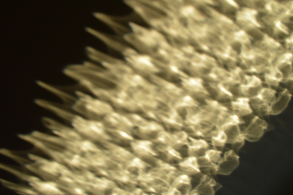 I like the guesswork associated with this image. The light is varied and interesting and and I like to find different shapes. It almost looks a but like a computer generated sound wave. Nice shot.