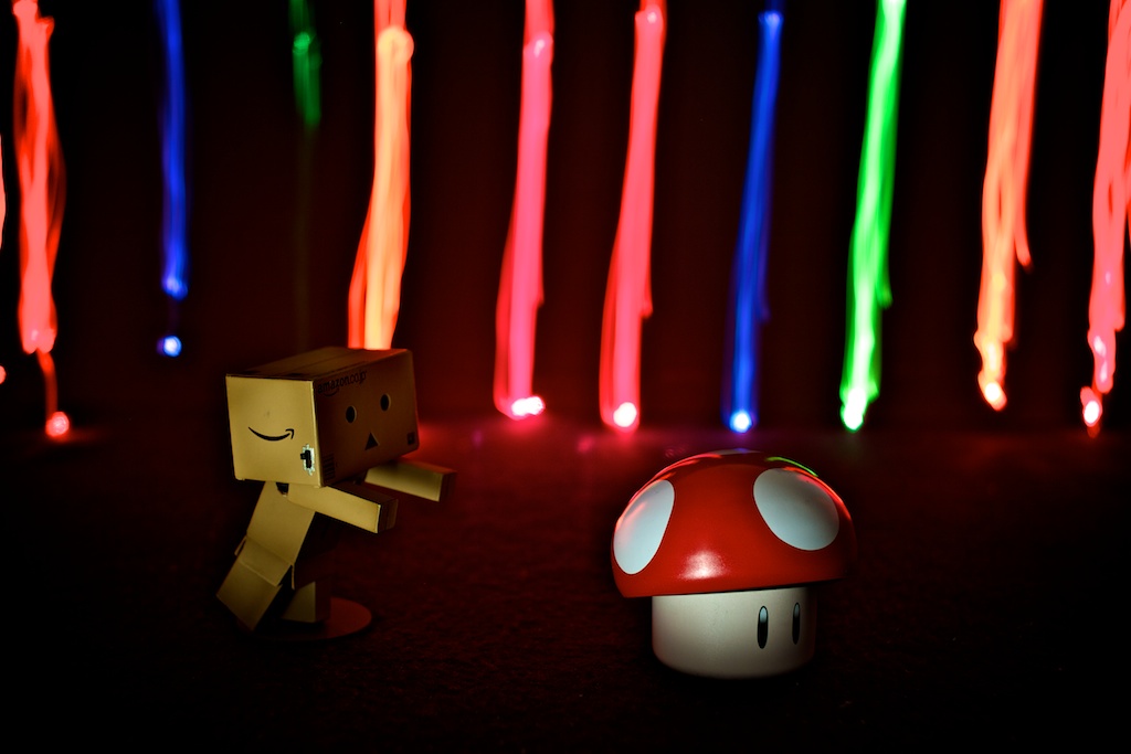 A nice light painting scene. I would say the light feathering around the mushroom is a little too tight and it might have been nice to have the key light a little bit more front on.