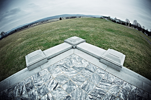 VI - (I don't know how to make the trademark thing). Cool but the fisheye effect is too much for me. The vignetting takes away from it. With out it it might look like a shot of a reflection.