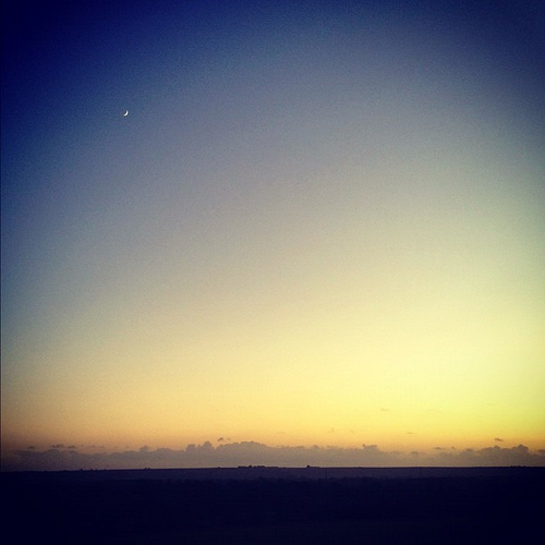 acearchie : Nice . Tiny moon over a big piece of planet . Was this the last of a sunset , or was it one of those rare bursts of light that sometimes happens just after the sun sets ? Did you accentuate the vignetting in post or is this pretty much what happened?