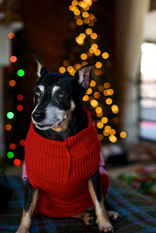 Team Timm : I have friends who have one of these and it never sits still . Yours does , you're lucky . The dog is nice and sharp , and the background isn't . I really like the light disks in the background . Christmas lights?There is , however , something strange to me about the dog's eyes , maybe flash reflection?